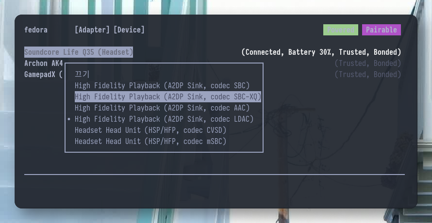 이번 포스트에서는 기존에 GUI로 사용하던 블루투스제어기, PulseAudio 및 Pipewire 세션 관리자인 pavucontrol, 그리고 WiFi 설정을 위한 TUI/GUI 도구를 소개합니다.