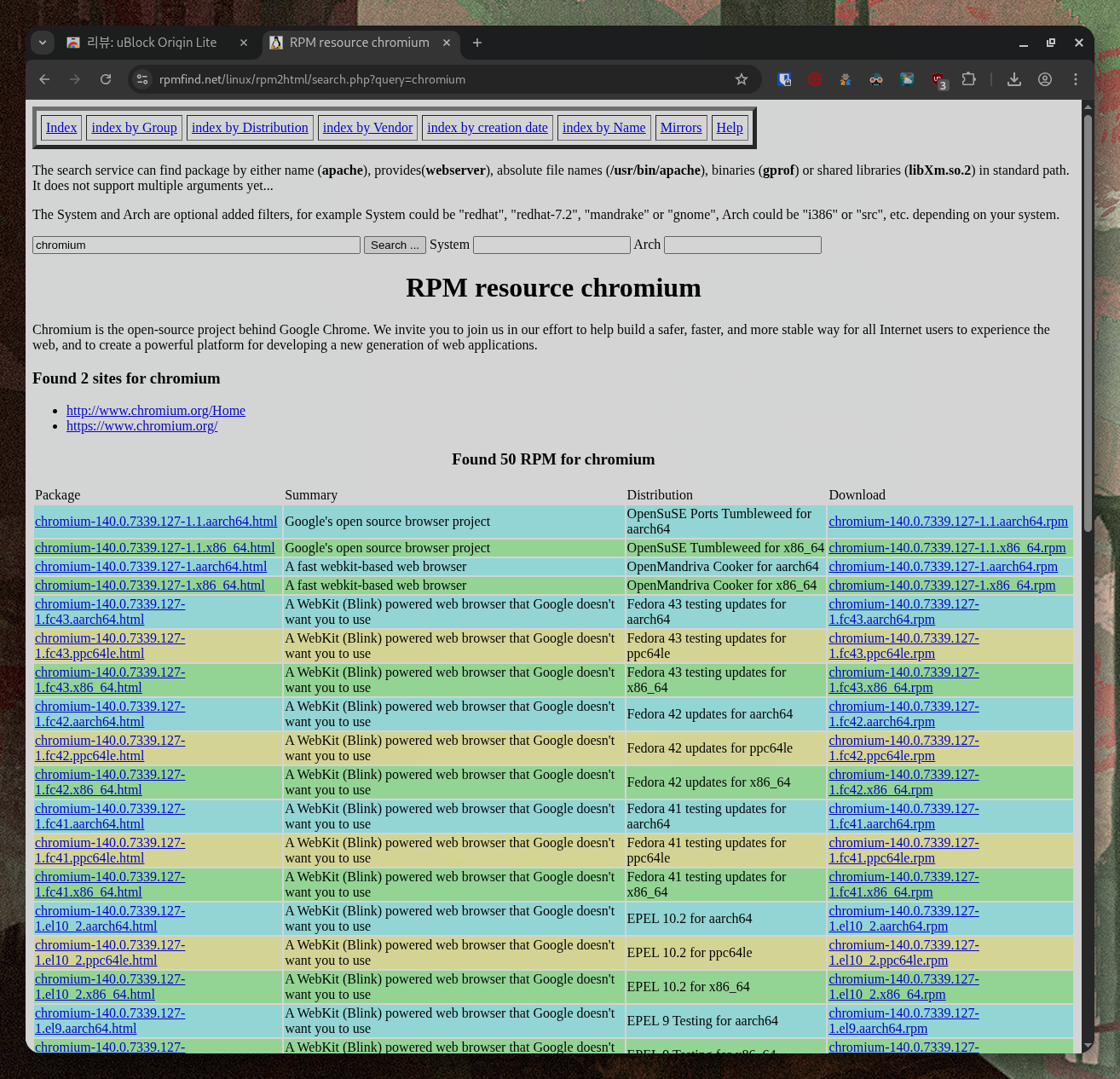 마지막 세번째 방법은 --disable-feature.. 플래그를 사용할 수 있는 가장 최신의 chromium 설치 패키지를 백업받아 놓고 더 이상 업데이트를 하지 않는 방법입니다. Chromuim을 사용하기 위해서는 chromium 패키지와 chromium-common 패키지 이렇게 두 개의 패키지를 설치해야 합니다. Fedora의 경우에는 chromium 패키지, chromium-common 패키지 링크에서 다운로드 받을 수 있습니다.