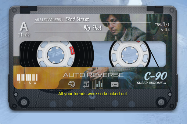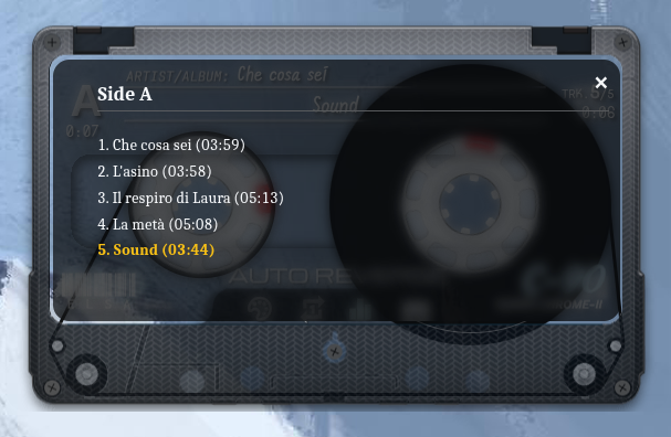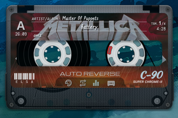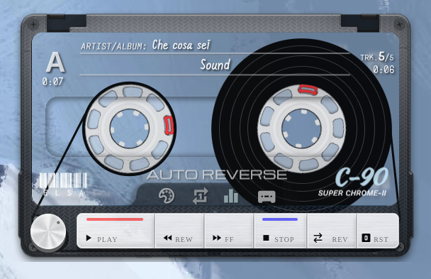 기본적으로 투명한 인터페이스를 갖고 있습니다. 보통 앨범을 폴더단위로 구분하여 관리하므로 해당 앨범 폴더에 cassette-cover.png 파일로 cover 이미지 파일을 넣어 놓으면 해당 폴더를 로딩할 때, 이미지 파일을 가져와 masking 하여 보여 줍니다.
