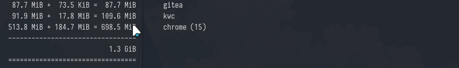 큰 차이는 아니지만, 아래의 스샷을 보면, Helium 은 process id가 chrome으로 표시되며, 대략 700MB 정도의 메모리를 사용합니다. Chromium의 경우는 800MB의 메모리를 사용하는 것을 알 수 있습니다.