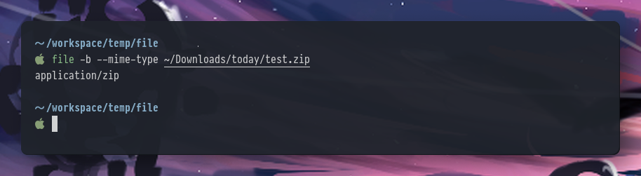 터미널에서 test.zip 파일의 type을 다시 확인해 보니, 이제 정상적으로 zip 파일로 인식합니다.
