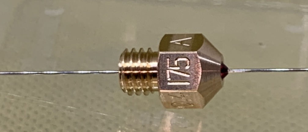 노즐에 각인된 표시는 총 4가지로 R(Ruby), 175(1.75mm Filament용), 0.4(Nozzle Hole 직경), A(?) 이렇게 표시가 됩니다.