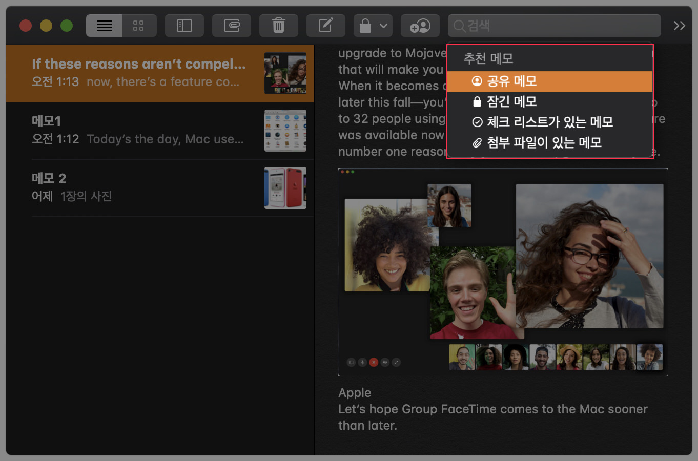 메모(Notes) 앱