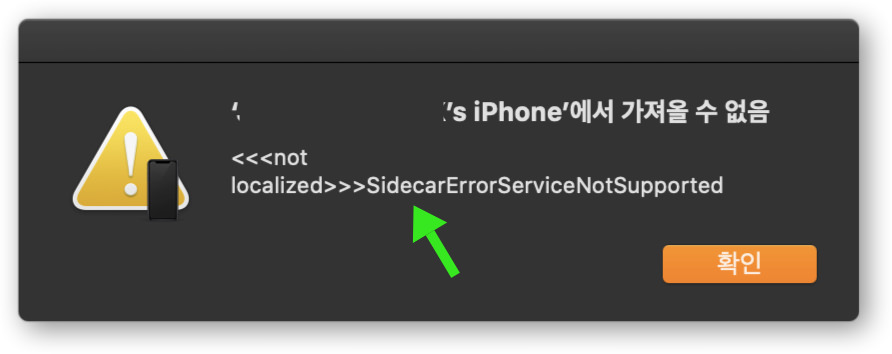 스캐치 추가를 실행 하면, 현재 Beta 1에서는 아래와 같은 오류가 나타납니다. Sidecar 기능 추가에 따라 iPad에서 Drawing을 하고 즉시 해당 스케치를 Mac으로 가져 올 수 있는 기능으로 보여 집니다.