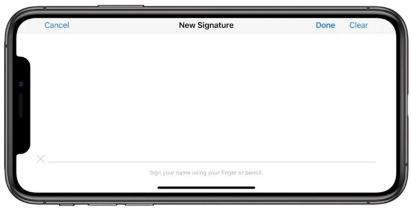 만일, iPhone 이나, iPad등을 사용하고 있다면, 위의 스샷과 같이 해당 기기 항목이 표시됩니다. iOS 13 iPhone이나 iPadOS 13이 탑재된 기기의 경우 터치 인터페이스 혹은 Apple Pencil을 이용하여 곧바로 서명을 만들 수 있는데요, 해당 iOS 기기를 선택하면, iPhone이나 iPad가 자동으로 반응하여 아래와 같이 새로운 Signature를 그릴 수 있는 앱이 실행 됩니다.
