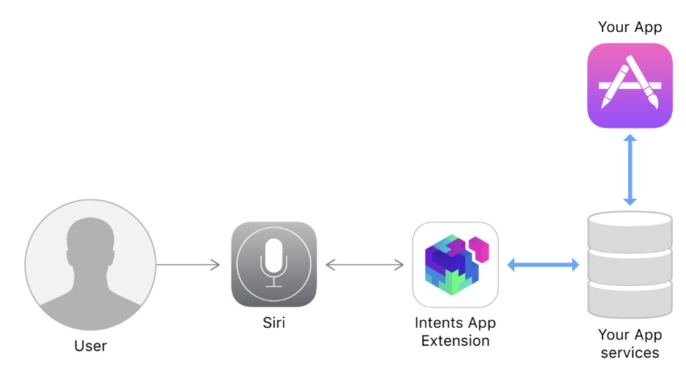 이것은 앱 개발자가 Xcode Project에서 Siri Feature를 활성화 하고, Intents App Extension을 추가/코딩 함으로써 간단히 구현할 수 있도록 되어 있습니다.