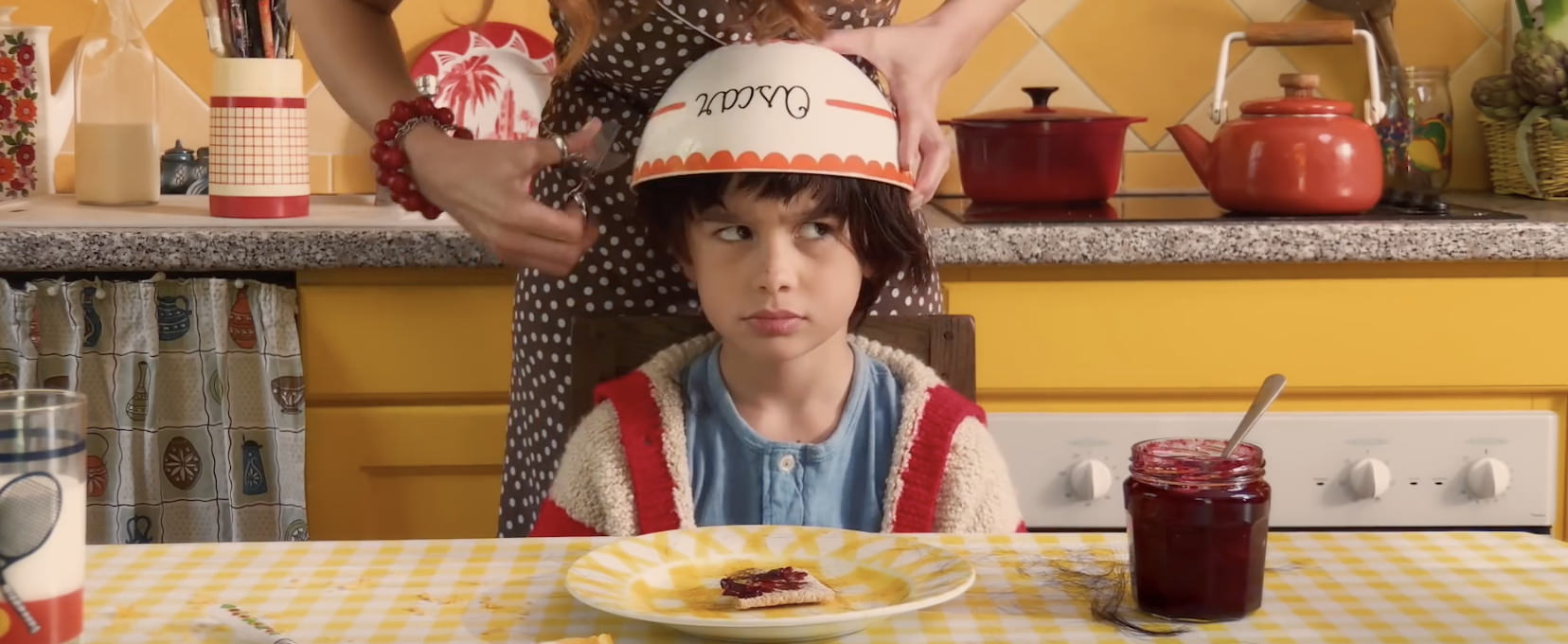 Coupe de Bol은 우리나라 말로 "그릇"이라는 뜻으로, 한 소년의 엄마가 그릇을 머리에 씌우고 머리를 잘라주는 것으로 시작됩니다. 우리말로 바가지 머리 컷 이지요..^^ 자신의 모습을 확인한 소년이 매우 좌절해하며 학교에 가는데...