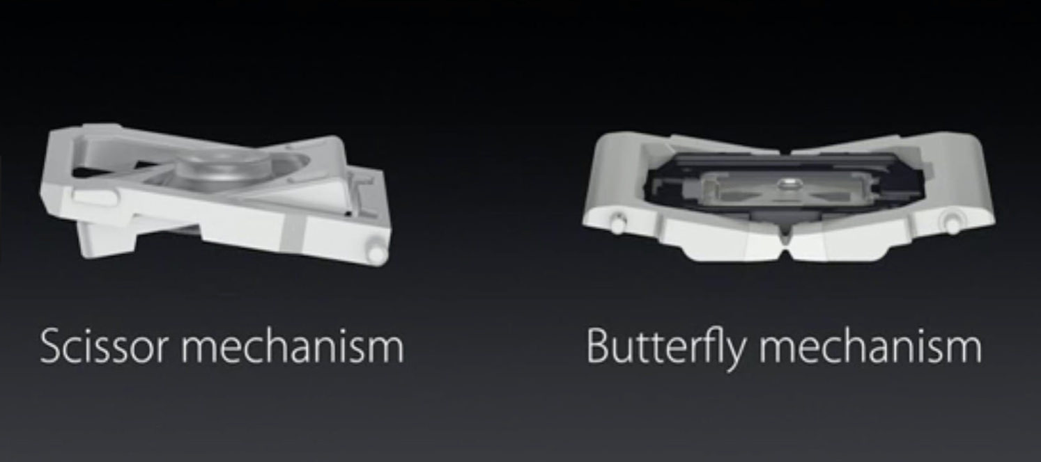 애플이 나비식 키보드를 페지한 이유에 대해, 그는 몇일 전 수석 디자이너인 Jony Ive가 Apple을 떠난 것과 무관하지 않고, 생산 비용이 너무 높은 것도 변경의 주요 이유라며, 새로운 시저 메커니즘은 과거 전통적인 방식이 아닌 새로운 디자인이 적용되는 것으로 키 스트로크가 부드럽지만 나비식에 비해 높이가 있는 만큼 MacBook의 두께가 약간 더 두꺼워질 것이라고 전망했습니다.