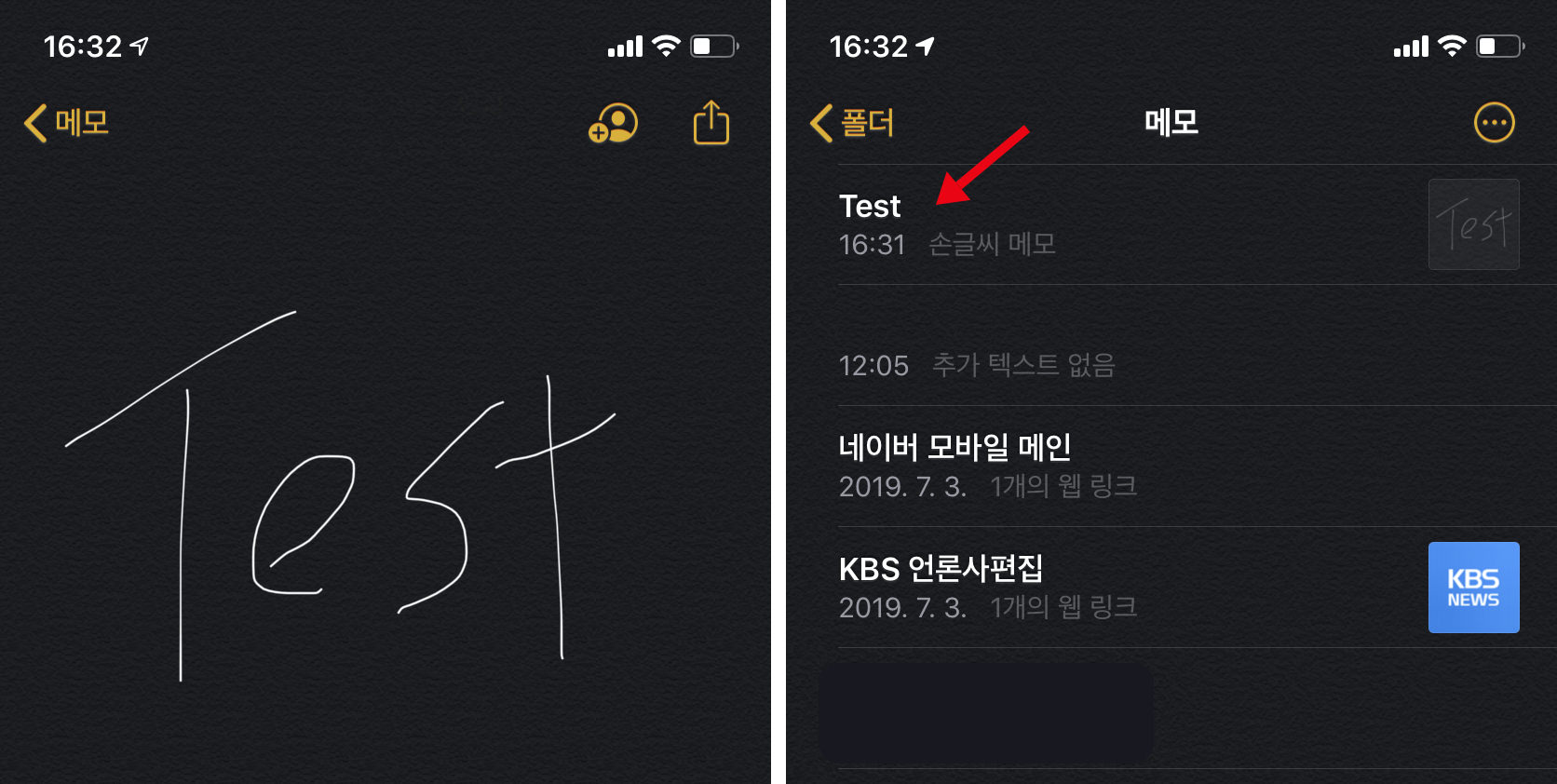 메모 앱에서 핸드라이팅으로 글자를 쓰고 저장한 경우, 자동으로 글자를 인식.. 제목을 붙여 줍니다.