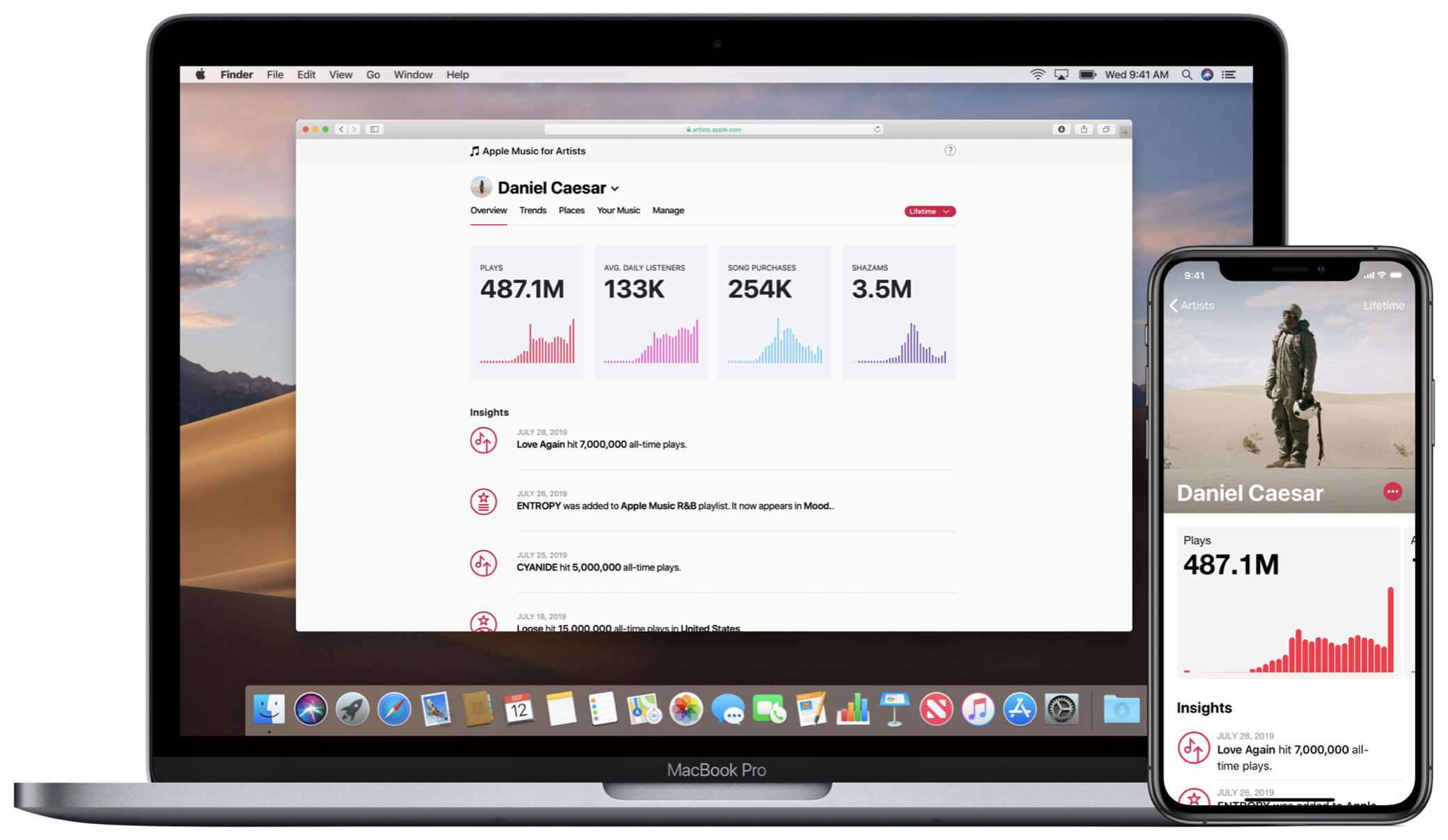 Apple Music for Artists는 Apple Music에 자신의 음원을 올린 아티스트들을 위한 일종의 분석(Analystic) 도구 같은 서비스로, 아티스트는 이 서비스를 통해, 자신의 음원을 얼마나 많은 사람들이 청취 했는지에 대한 기간별 분석차트와 각 국가별 청취자들의 분포등을 확인할 수 있습니다 .