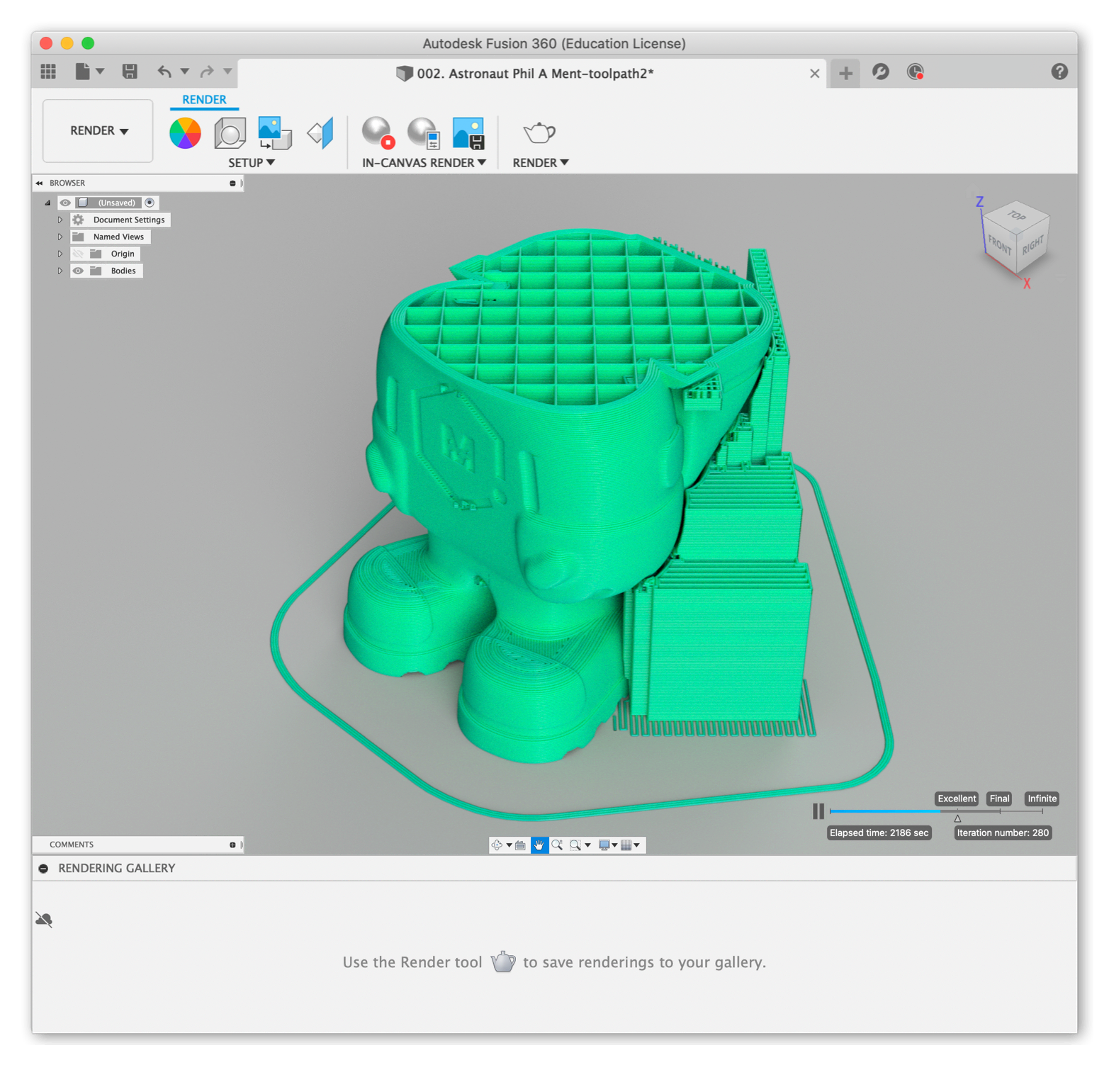 바로 Fusion 360 같은 rendering 기능을 보유한 S/W에서 현실적이고, 이상적인(ideal) 3D 프린팅 출력 결과를 이미지로 뽑아낼 수 있다는 점 입니다.