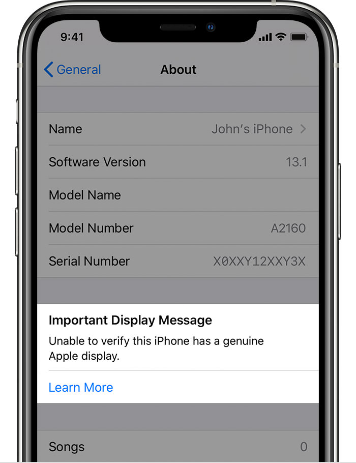 이 문서에 따르면, 아이폰 11 라인업(아이폰 11, 아이폰 11 Pro, 아이폰 11 Pro Max) 디스플레이를 비정품 부품으로 교체할 경우 정품 디스플레이가 아니라는 경고문구가 알림 메시지와 설정 앱에 표시하게 됩니다.