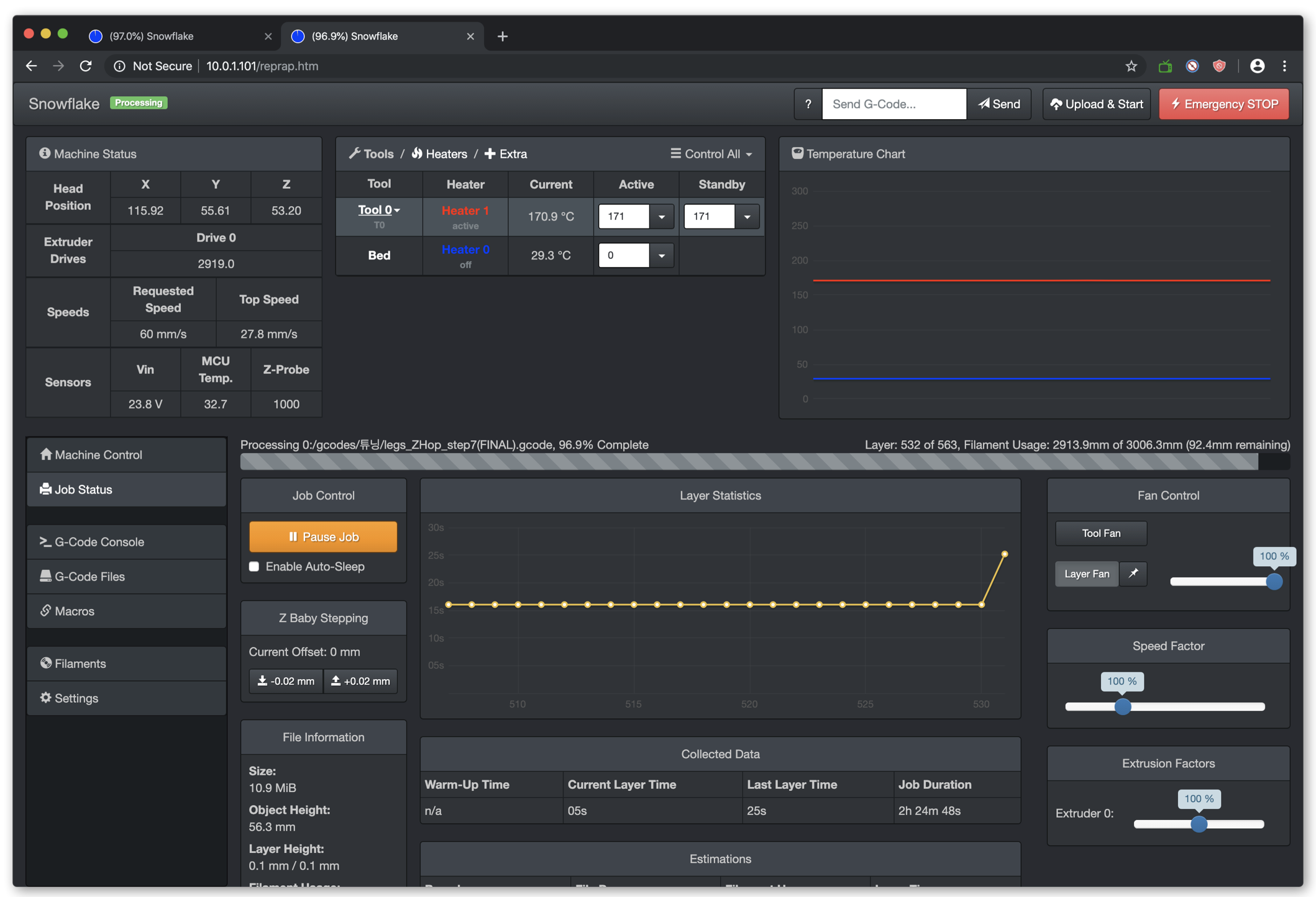Duet은 Duet3D에서 공식적으로 릴리즈 하는 Web Interface가 있고, Christian Hammacher가 별도로 배포하는 DWC 버전이 있습니다. 공식 Web Interface의 최신버전은 1.22.6 이죠.