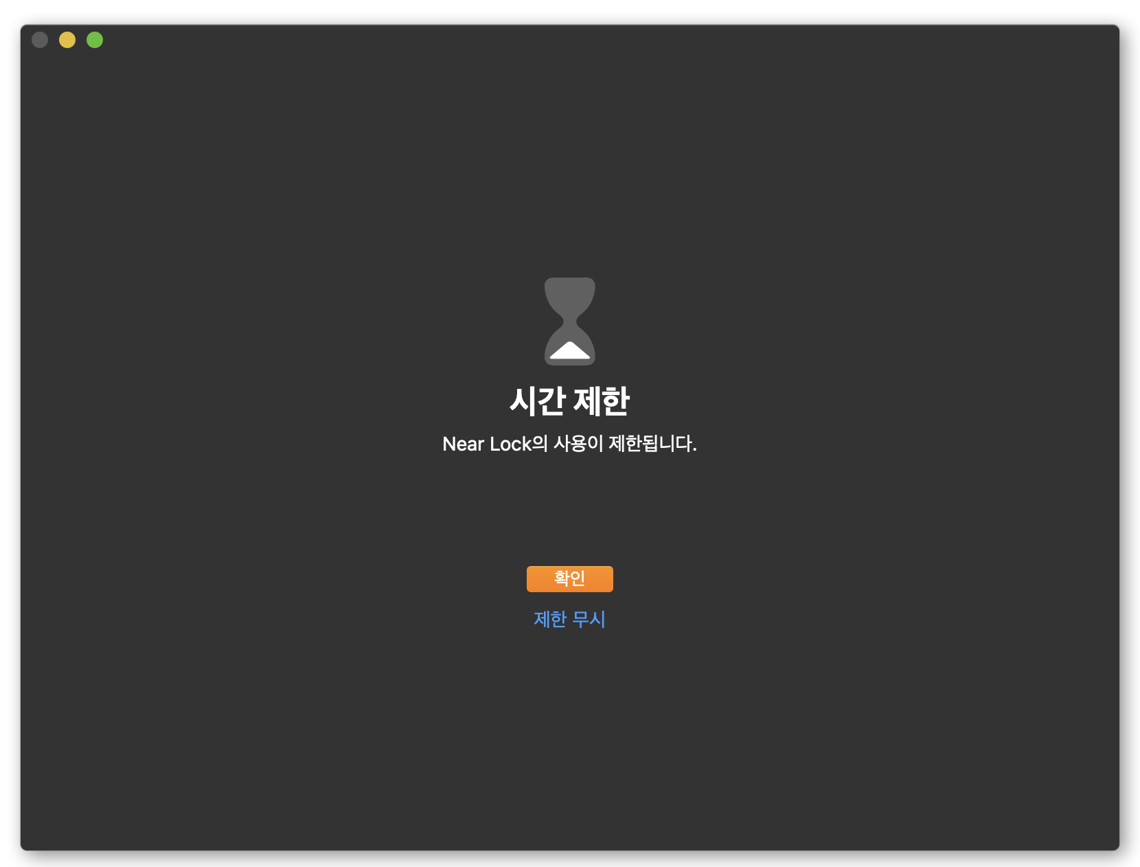 다운 타임이 시작되어 각 앱의 윈도우 화면이 잠기게 되면, 제한무시를 할 수 있습니다.