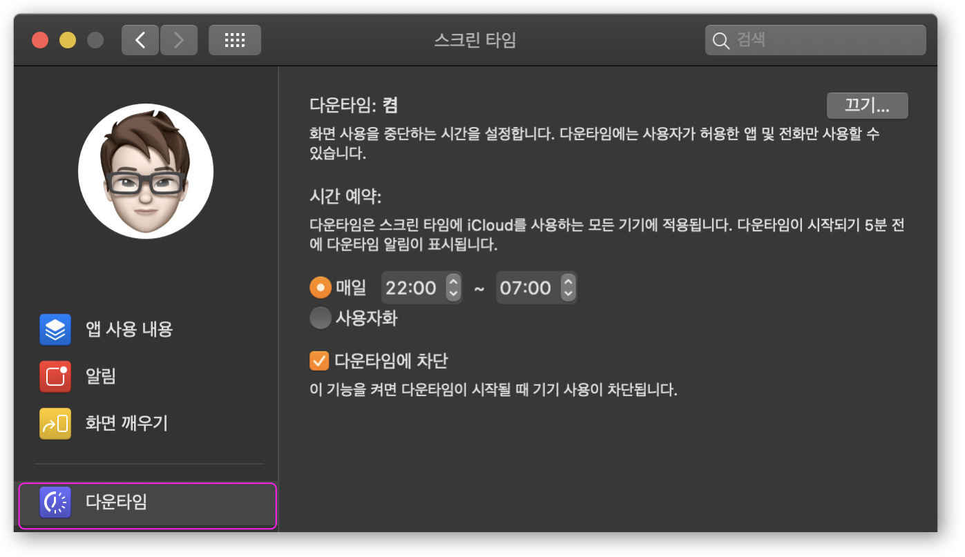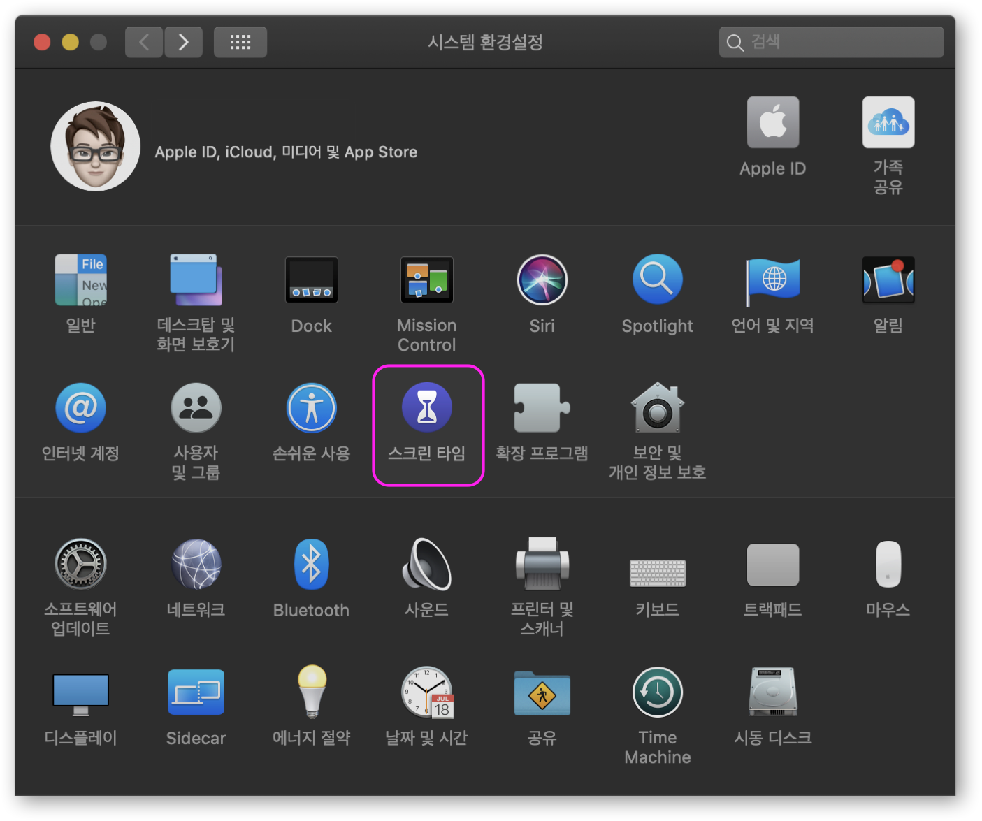 스크린 타임은 시스템 환경설정 > 스크린 타임을 통해 확인할 수 있습니다.