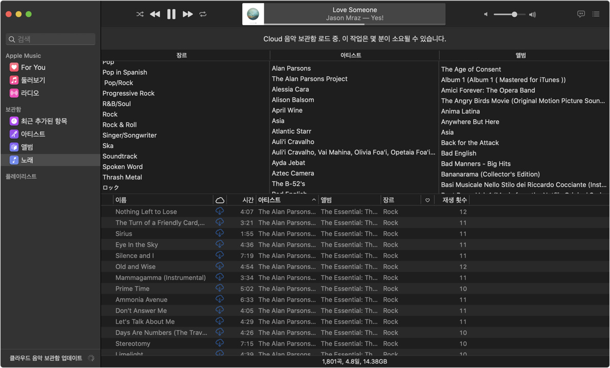 - 음악 라이브러리를 관리하기 위한 컬럼 브라우저 기능 부활