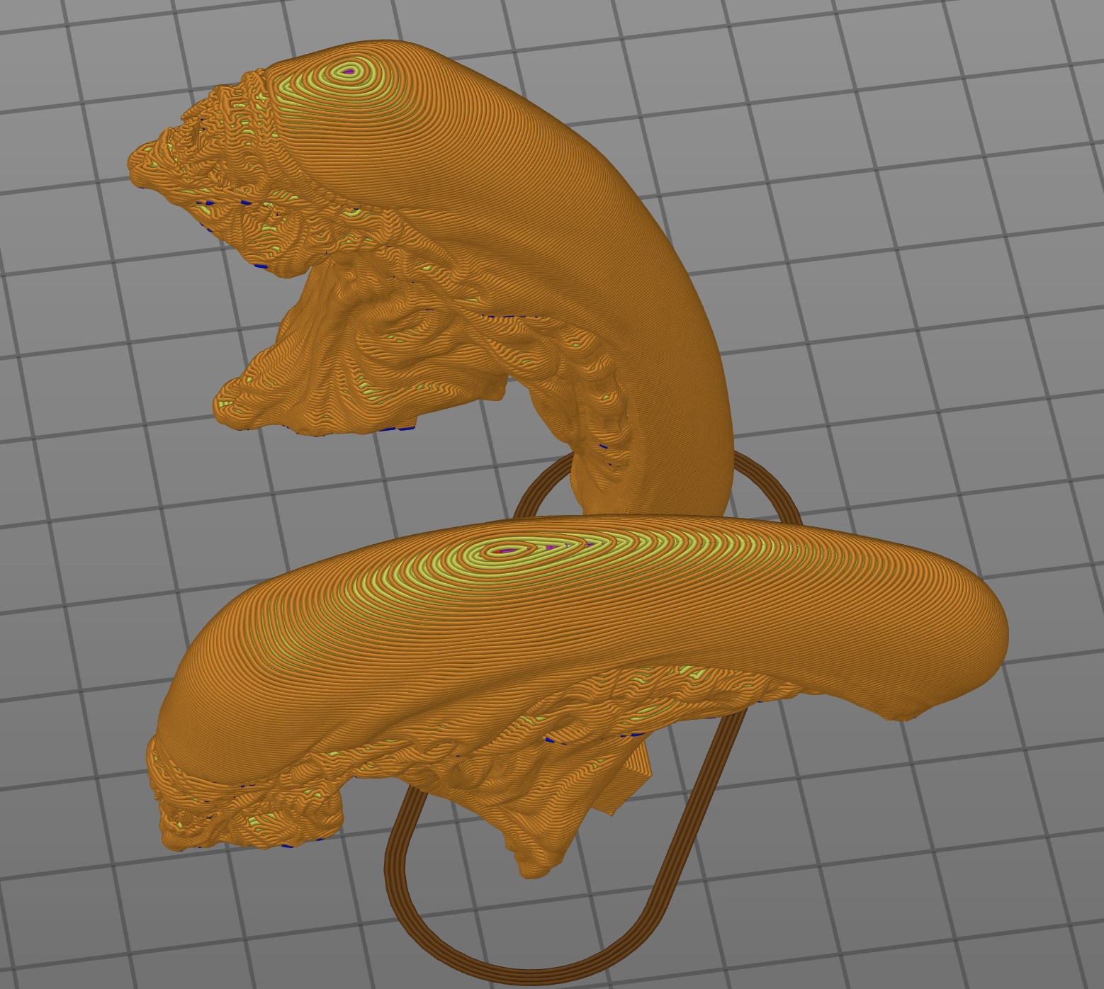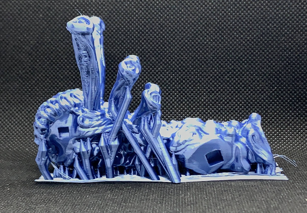 표면이 매우 울퉁불퉁하고 변화가 많기 때문에, 출력품질 저하가 잘 눈에 띄지 않는다는 장점이 있지만, 전체적으로 Over-hang이 많이 존재하기 때문에, Support를 필수적으로 사용해야 합니다. 이 경우, 출력 시간은 더 많이 걸리게 되겠죠.
