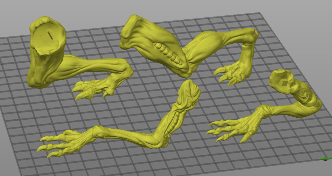 팔과 다리부분은 형태는 각기 다르지만, 보시는 바와 같이 행태의 특성 상, 다른 방향으로 출력할 수 없고 발바닥/손바닥이 Bed에 접하는 정상적인 방향으로 출력을 할 수 밖에 없어 보입니다.