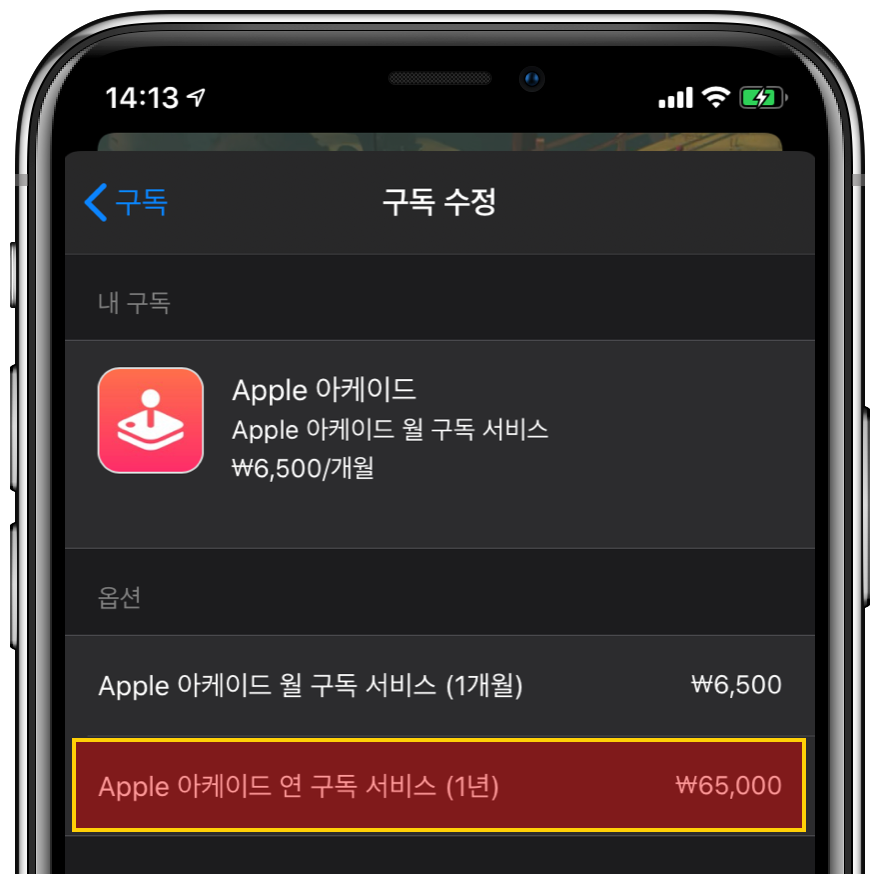Apple 아케이드 구독 서비스 요금 옵션에 연 구독 서비스 항목이 추가되었습니다.