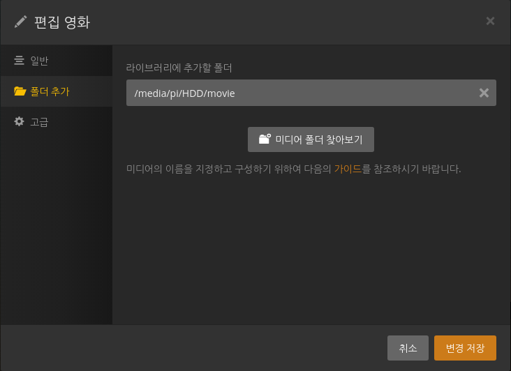 이제 웹 브라우저에서 http://localhost:32400/web/index.html 주소로 연결한 후, 라이브러리를 만들고, 해당 라이브러리에 대한 폴더를 선택해 주면 됩니다.