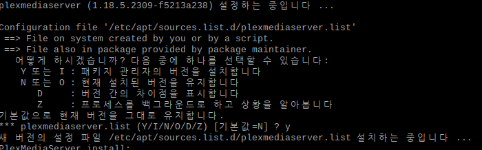 설치 중에 설치 옵션을 아래와 같이 물어오는데, Y를 선택해 줍니다.