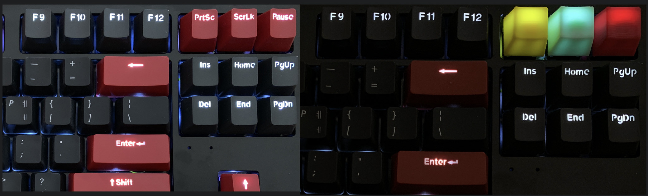 아래는 원래 키캡과 3D 프린팅한 키캡으로 교체후의 비교 샷..