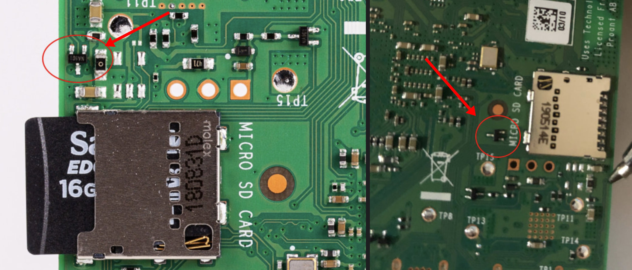 보시는 바와 같이 SD Card voltage swich의 위치가 SD Card slot의 측면에서 뒷쪽으로 이동한 것을 확인할 수 있습니다.