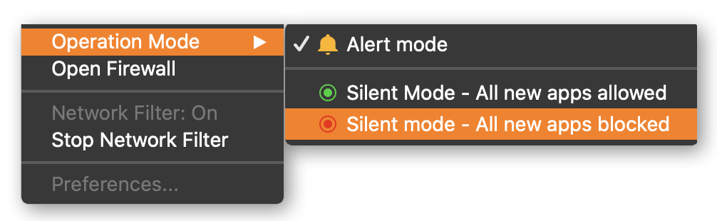 기타 다른 네트워크 제어 App들과 마찬가지로.. Alert, Silent Allow, Silent Block 이렇게 3가지 모드를 지원합니다.