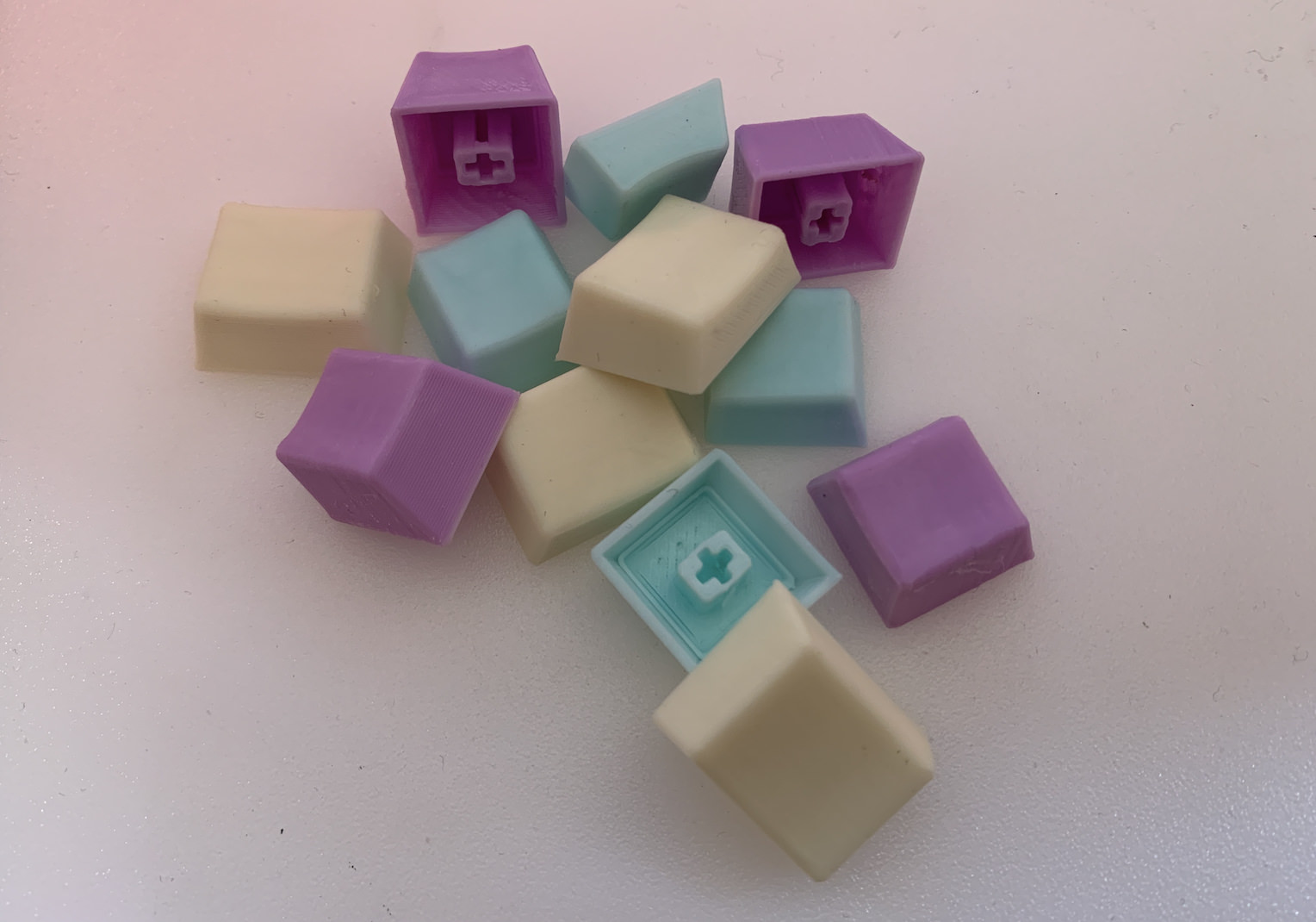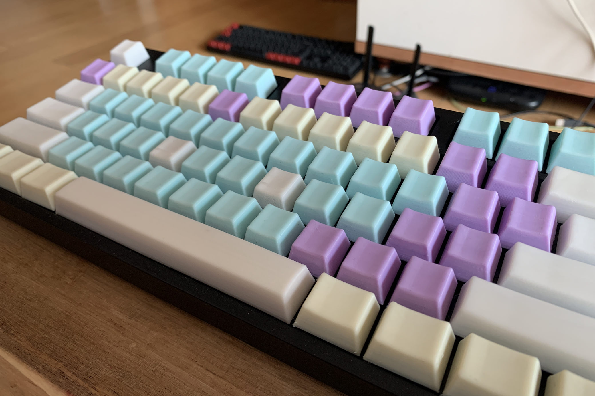 빨강, 파랑 등 짙은 색상을 사용하면, Sanding 시, 그 흔적이 눈에 확실하게 띄기 때문에.. 흰색이나 파스텔 색등 연한색으로 출력을 했습니다. 확실히 연한색이 티가 안나내요.. 덕분에 키보드 전체 느낌이 상당이 Retro한 인상을 줍니다. 다행히 제 취향에도 맞구요..