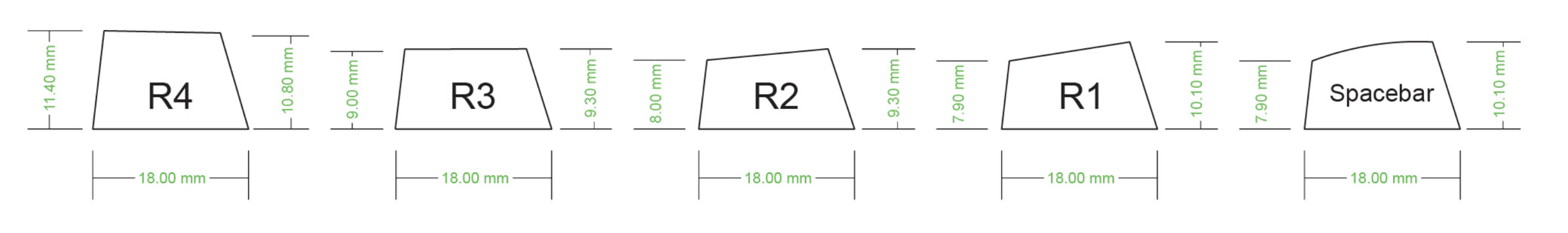 이번 디자인에 참고한 OEM Profile Keycap specification은 MAX Keyboard사의 profile & size Information을 참고 했습니다. OEM Profile 이고, 키보드 자판 기준, Keycap 규격은 아래를 참고 하시면 됩니다.