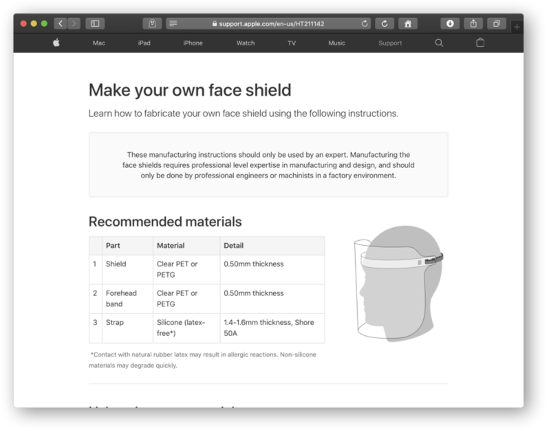 애플, COVID-19 관련 간병인 및 의료진들을 위한 안면보호대 제작관련 정보 공개