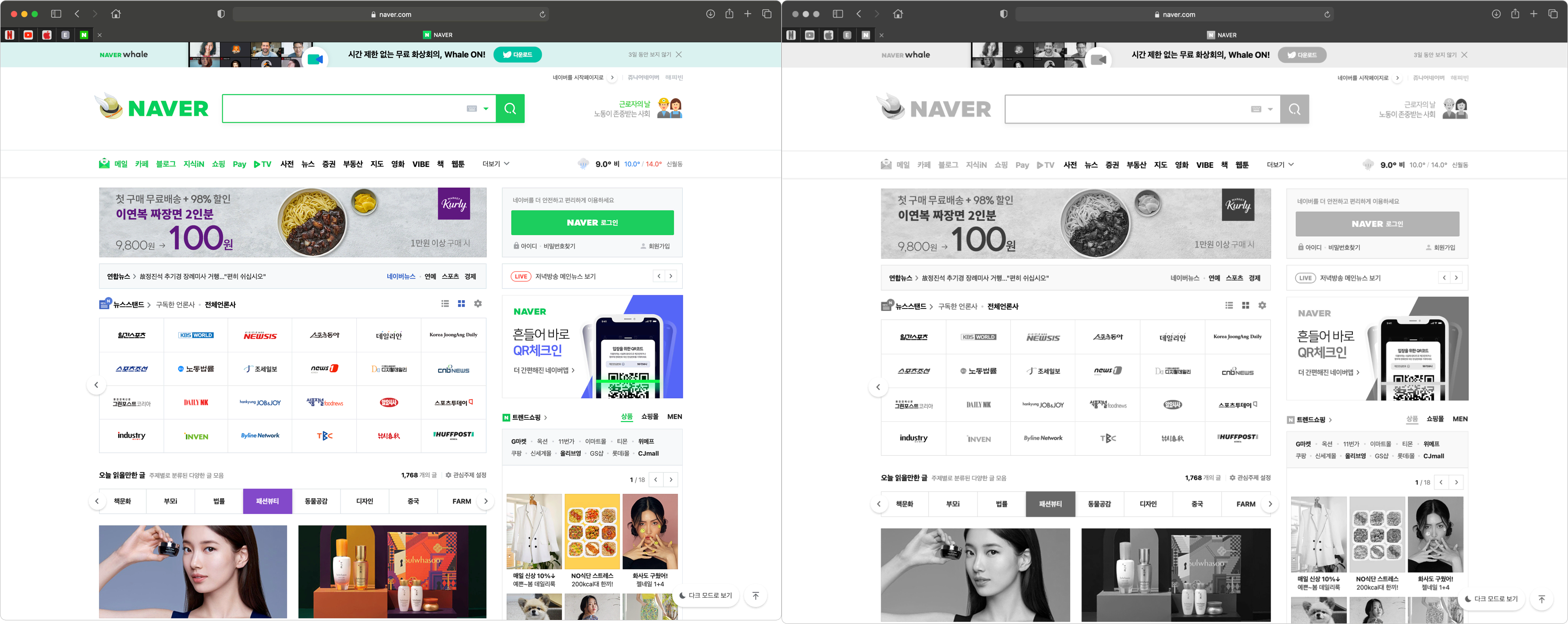 색상정보가 빠진 흑백화면으로 보면, 마치 흑백신문을 보는 것 같은데 눈의 피로감이 확실히 반감됩니다. 굳이 컬러로 볼 필요가 없다면, 눈이 피로할 때 가끔 이용해 보는 것도 좋으실 겁니다.