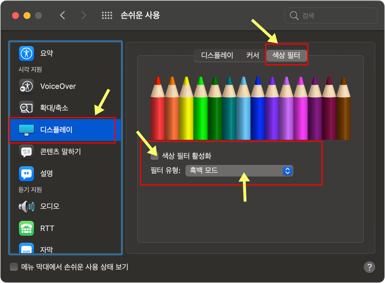 macOS 특히, 최신의 Big Sur 에서 Grayscale 모든 전환은 방법은 아래와 같습니다.