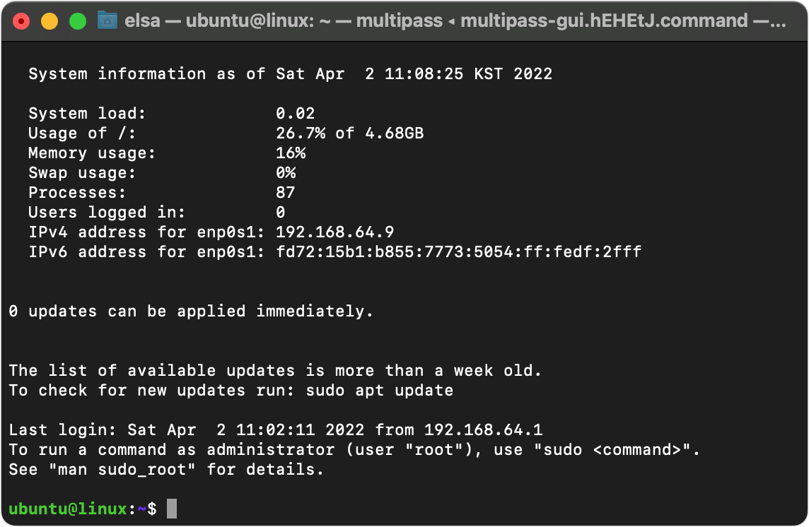 m1(apple silicon) mac에서 Linux를 사용하고 싶다면... 2 (Multipass를 이용하는 방법) 본문