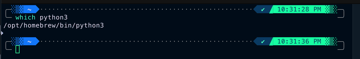 python의 위치는 터미널에서 아래와 같이 witch python 혹은 python3 라고 명령하면 알려 줍니다.