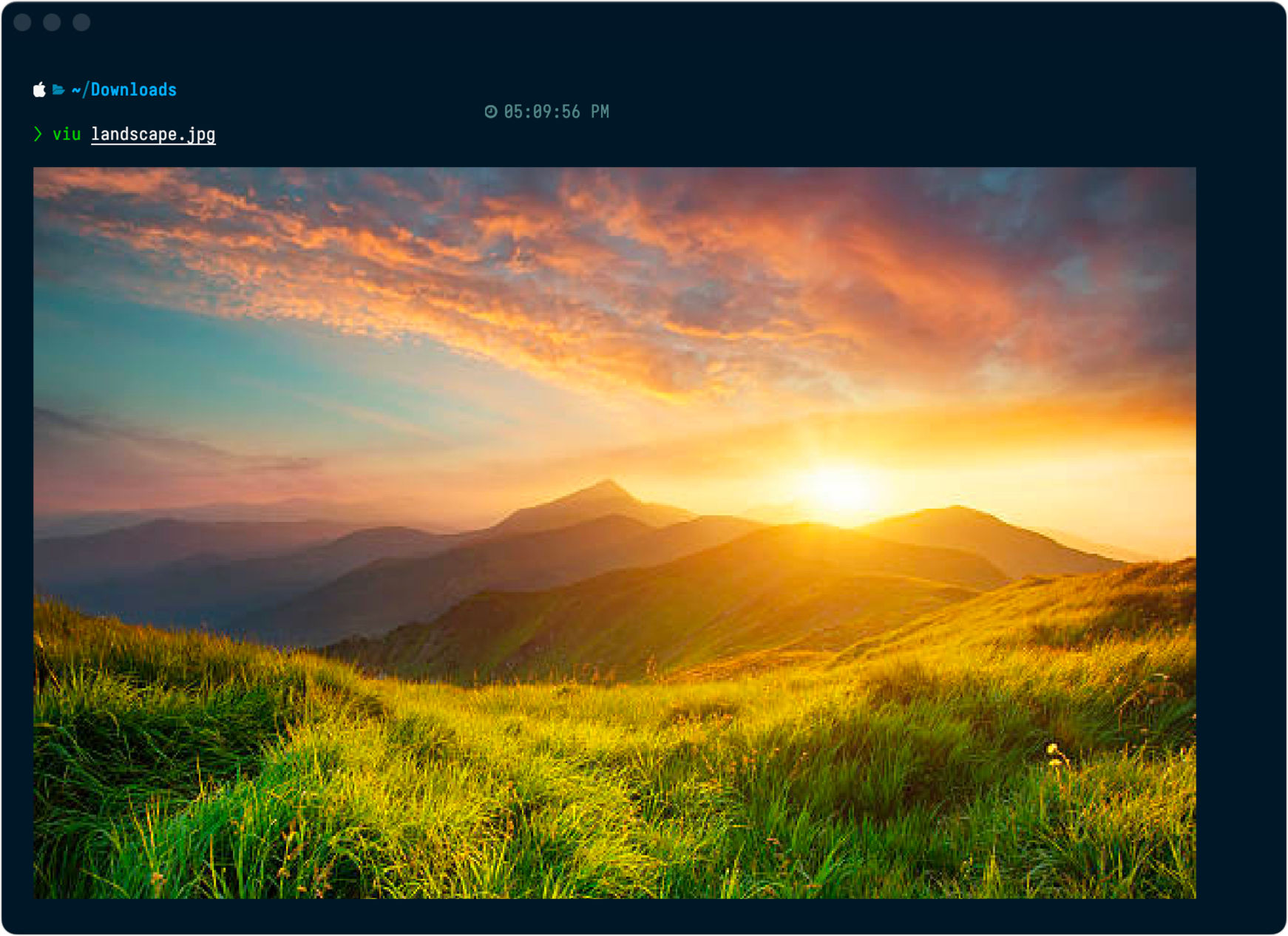 다음으로, macOS에 viu를 설치해 주면, iTerm2 처럼 kitty의 내장된 image rendering 기능에 의해 이미지 파일을 터미널에서 직접 확인할 수 있습니다.
