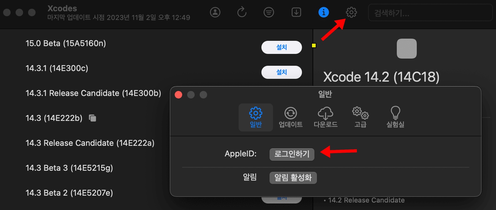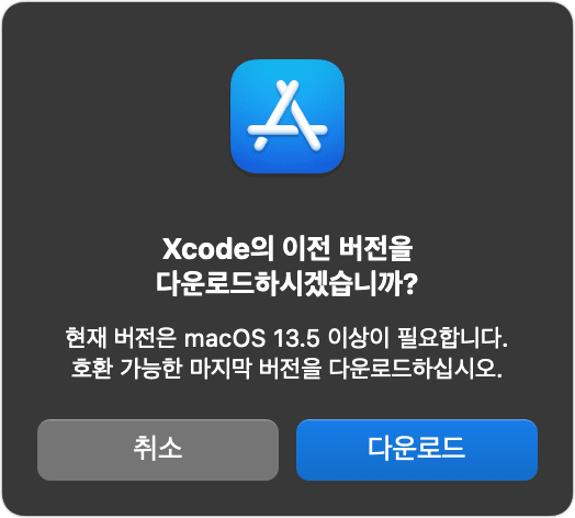 macOS 13.5 버전 이상만 사용할 수 있다는 것은 알겠는데..그럼 내 mac에서는 어떤 버전의 Xcode를 사용해야 하며, 또 어디서 다운로드를 받아야 하는 걸까 ?? 물론 다운로드 버튼을 누르면 다운로드는 받을 수 있지만, 실행이 되지는 않습니다.