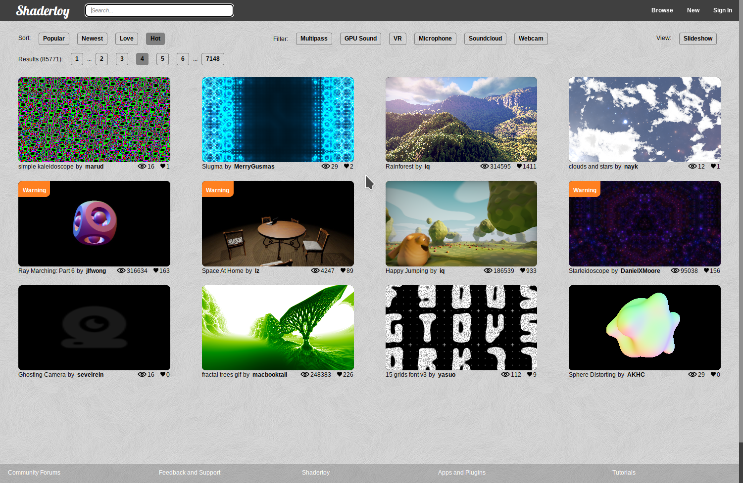 다음으로, shader wallpaper가 필요한데, 이것은 shadertoy 라는 홈페이지에서 골라 쓸 수 있습니다.
