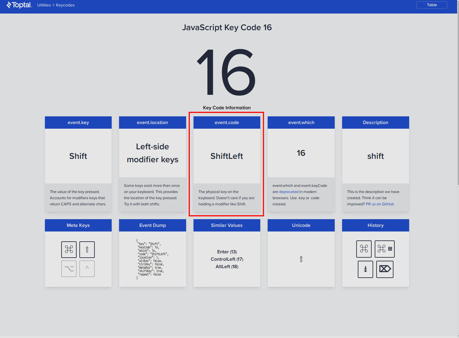 특정 키의 명칭을 확인할 때는 아래의 사이트를 이용합니다.