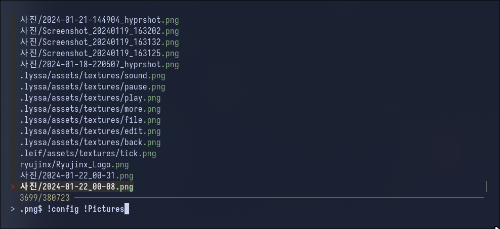 여기서 중요한 것은 **<tab> 을 하면 fzf 가 호출된다는 점 입니다. **을 fzf completion trigger라고 부르는데요, 이것은 여러 곳에서 응용이 될 수 있습니다. 예를 들어 cd **<tab>을 하면 현재 위치에서 하위 폴더의 특정 위치로 한번에 이동할 수도 있습니다. 여기서 fzf의 검색 기능의 강력한 기능이 돋보일 수 있는데, 예를 들어, nvim 을 검색하면 nvim이 들어간 하위 디렉토리들의 목록이 나오게 될 것입니다. 여러개가 나올 수 있는데, 한칸을 띄우고 다음 검색어를 넣으면, nvim으로 검색된 결과는 두번째 검색어의 영향으로 그 결과가 보다 좁혀지게 됩니다. 세번째 검색어를 추가한다면 검색결과는 보다 더 좁혀지게 될 것 입니다.