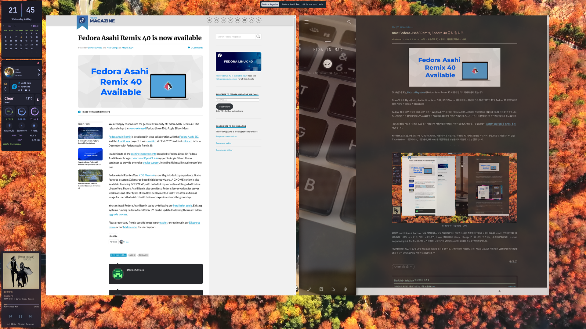 2024년 5월 8일, Fedora Magazine에 Fedora Asahi Remix 40 이 공식 릴리즈 기사가 올라 왔습니다.