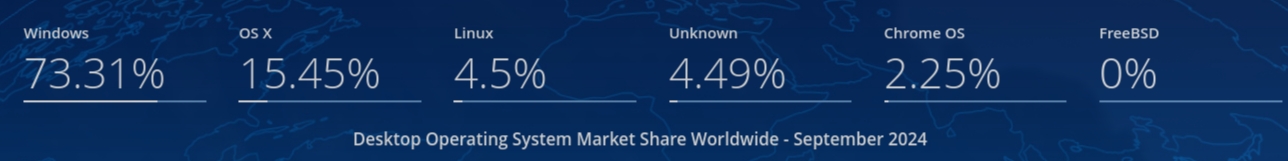 여기서 한 가지 간과해서는 안될 것은 statrCounter의 통계자료가 사용자들의 웹 사이트 추적기를 이용하여 사용하는 OS가 무엇인지를 식별하는데, Windows나 macOS와는 달리 많은 수의 Linux 사용자들은 이러한 개인정보 수집을 차단하는 솔루션들을 적용하고 있다는 점입니다. (당장 나 부터 그렇고..) 따라서, 실제 Linux 사용자의 일부는 Unknown 이라고 잡힌 통계치에 포함되어 있을 가능성이 높다는 점 입니다. 즉, Linux 사용자의 수는 실제로는 훨씬 더 많을 수 있습니다.