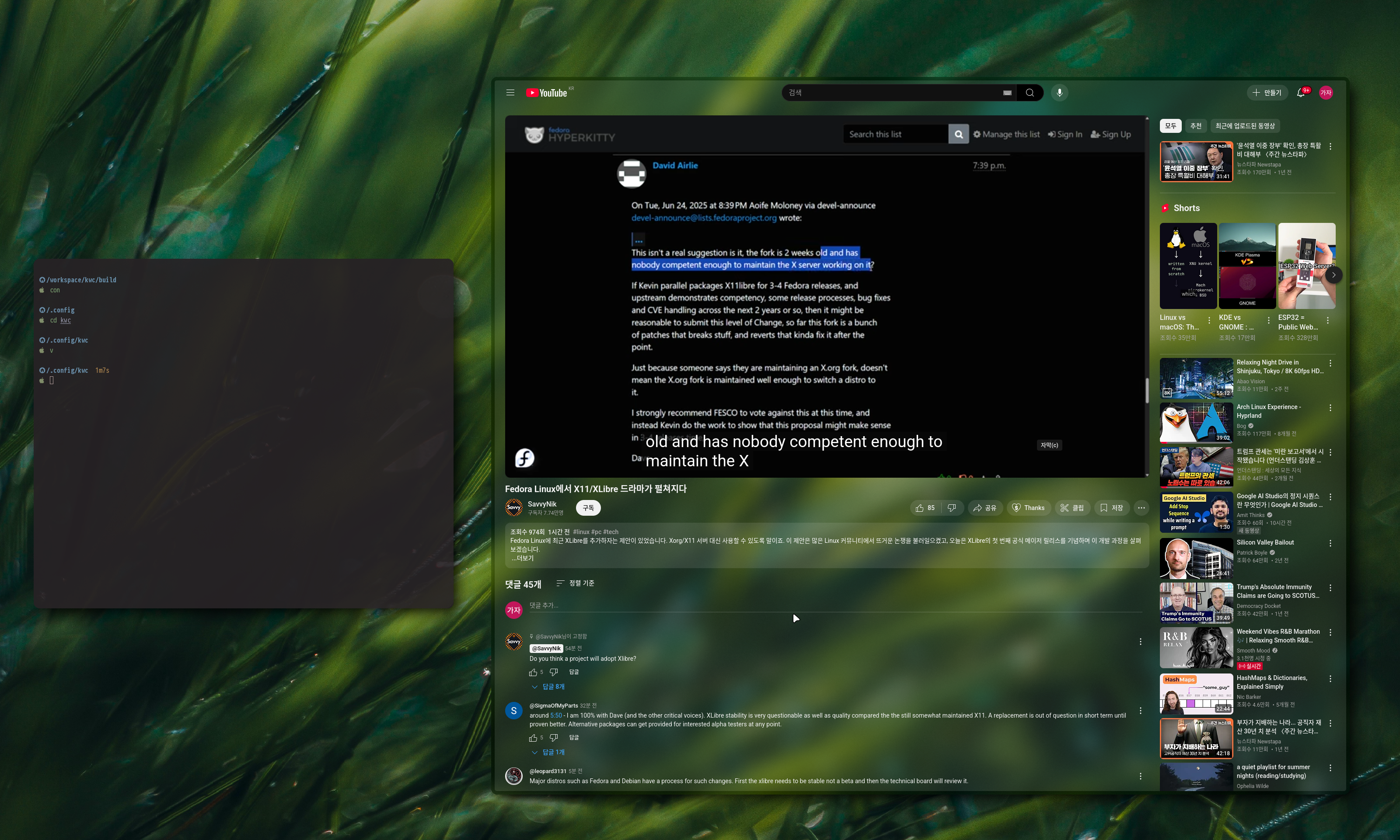 개인적으로는 Linux에서 Chromium > Brave Nightly > firefox Nightly > Mercury를 거쳐 현재 Zen Browser의 aarch64 beta 버전을 사용하고 있는데, 흠잡을 때 없이 깔끔하고 만족스럽게 사용하고 있습니다.
