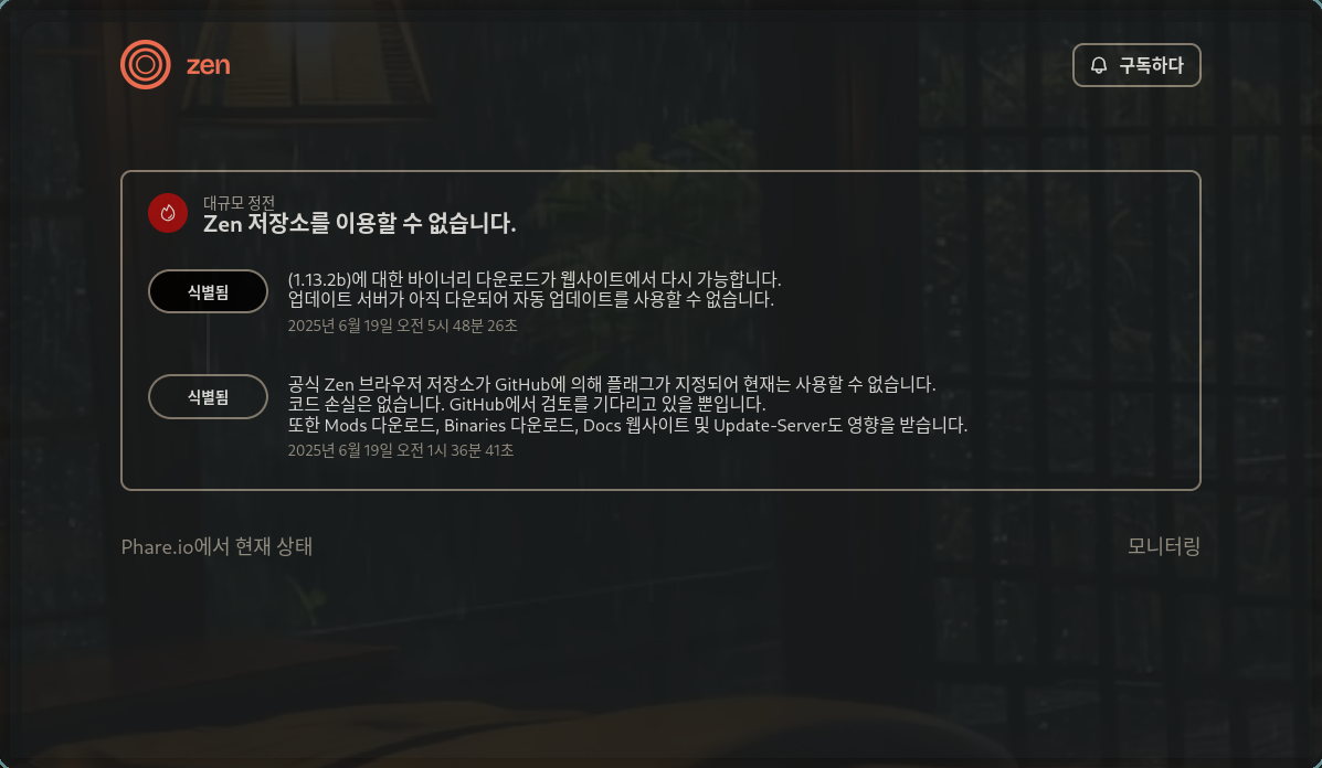 zen browser 관련 모든 github repo가 정상적으로 회복되었습니다.
