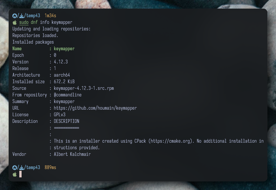 sudo dnf install ./keymapper-4.12.3-Linux-arm64.rpm