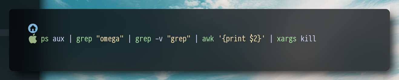 정리하자면, 위의 명령어 셋은 "현재 실행 중인 프로세스 중에 omega가 포함된 프로세스들만 모두 종료시켜라"라는 의미가 됩니다.