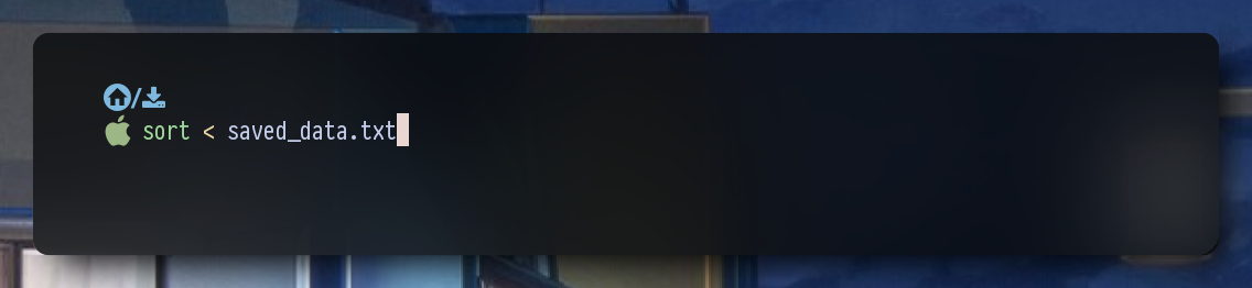 sort를 실행하면, 키보드로부터 데이터 입력을 대기 합니다. 사용자는 데이터를 키인하고 Ctrl+d 를 누르면 지금까지 입력한 데이터를 올림차순으로 정렬하여 결과를 출력합니다. 위의 스샷을 보면 < saved_data.txt 라고 되어 있으니, 입력을 키보드로 부터 받지 않고, saved_data.txt로부터 받게 됩니다.