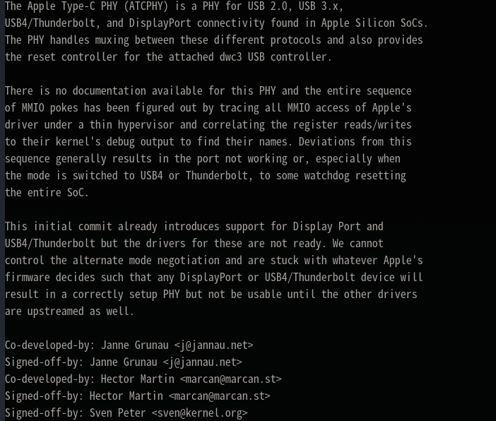 Asahi Linux, Apple Type-C PHY driver patchset 에 대한 RFC가 Linux kernel mailing list에 등록되었습니다. 본문