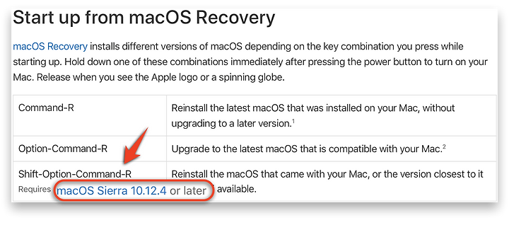 - macOS sierra 10.12.4 이전의 macOS가 설치되어 있는 경우에는 아래 Shift-Option-Command-R 처럼 동작