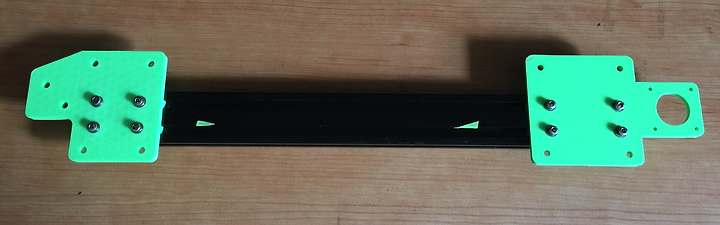 X축 프로파일의 좌/우에 새로 출력한 브라켓을 조립한 상태 입니다.